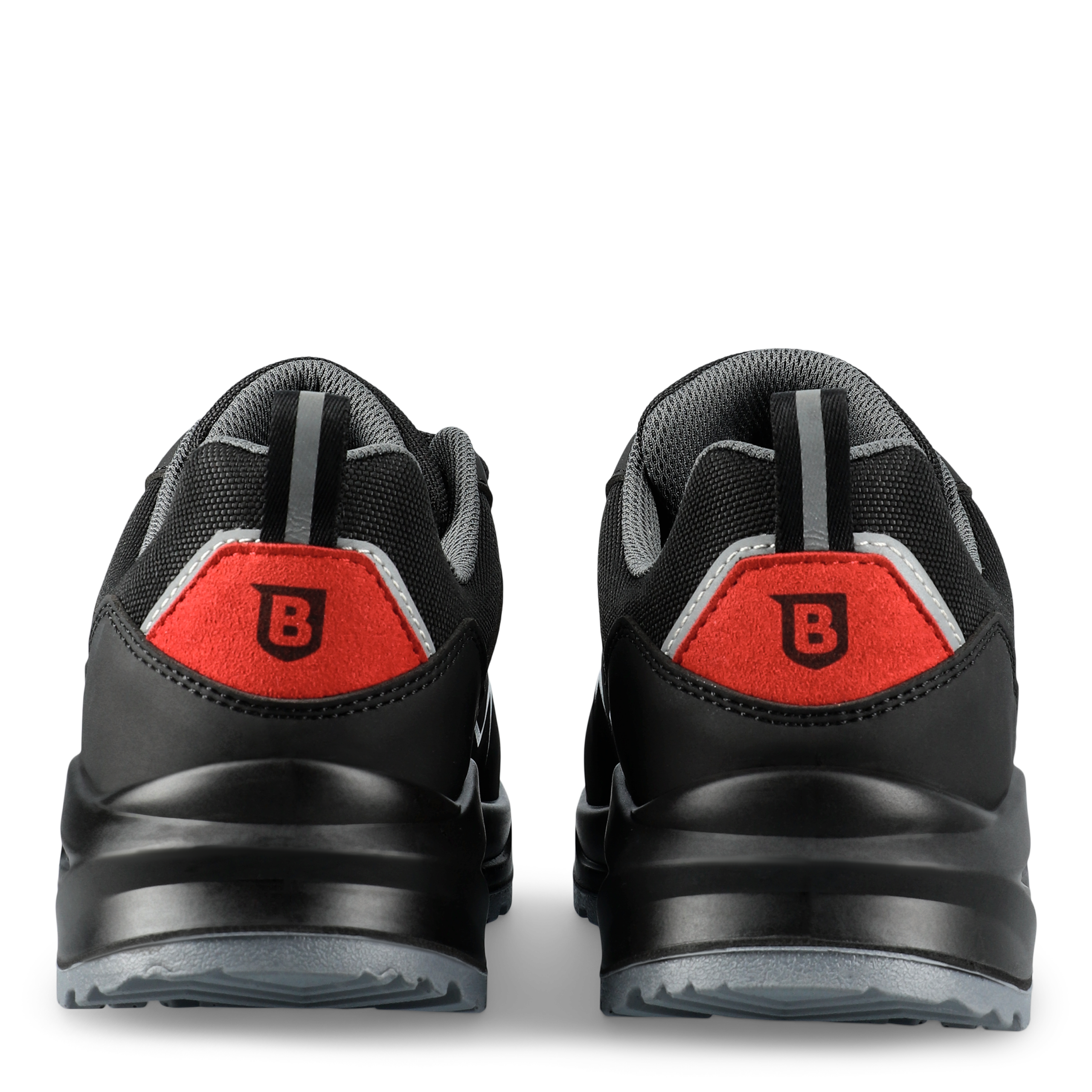 Denne kombination gør skoen ideel til arbejde på byggepladser, værksteder, lagre og i industrien, hvor fødderne ofte udsættes for belastning og potentielle farer.