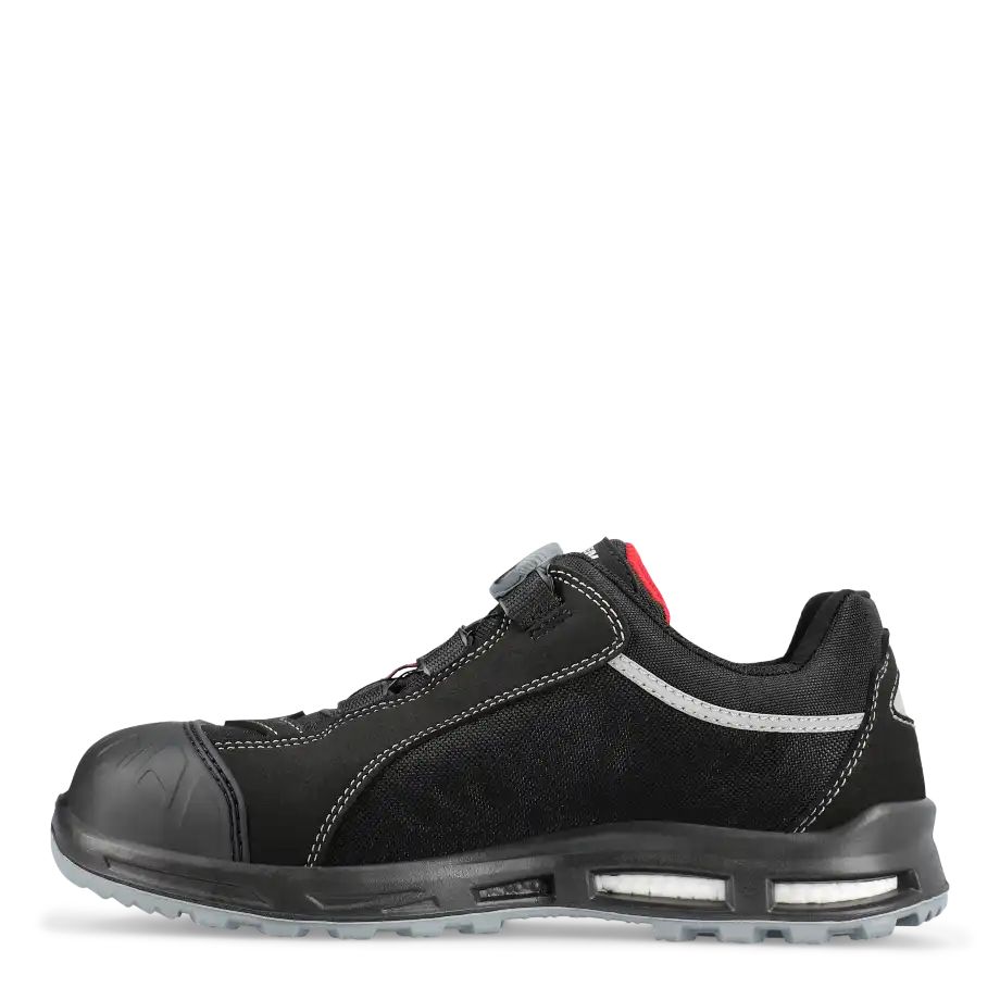 Skoen har et hudvenligt og svedabsorberende inderfór og en stødabsorberende og åndbar indlægssål. ESD godkendt og læderfri.