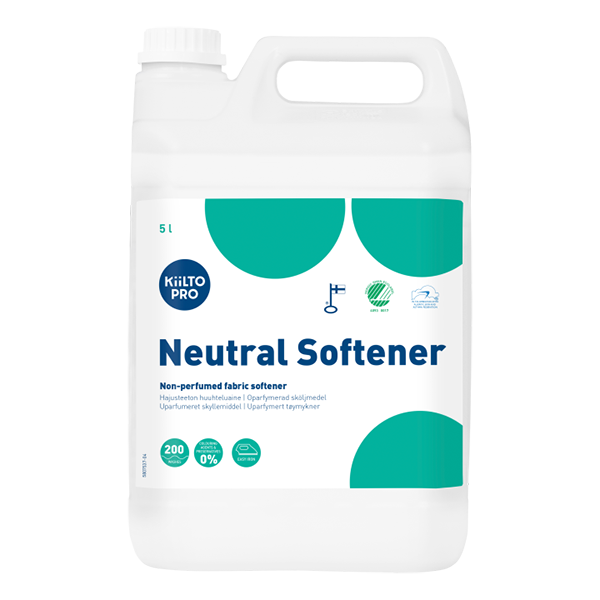 Uparfumeret skyllemiddel Kiilto Pro Neutral Softener er et uparfumeret skyllemiddel, som efterlader det friske vasketøj let og blødt.